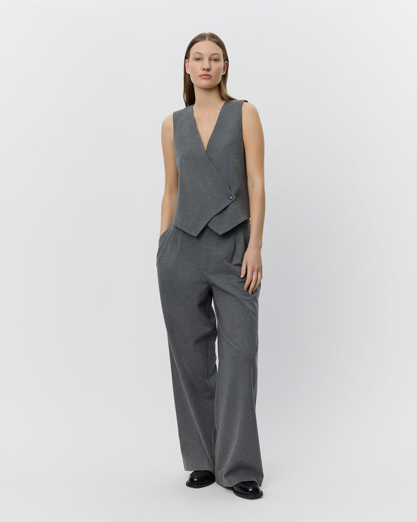 Pantalons à coutures contrastes laine et cachemire - Heather smoke