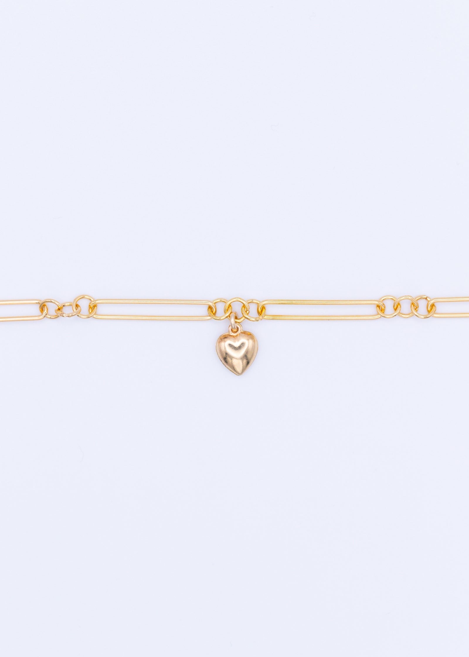 Bracelet 6" en or rempli, chaîne "paperclip" avec coeur bombé 8mm en or rempli. Rallonge de 1.5".