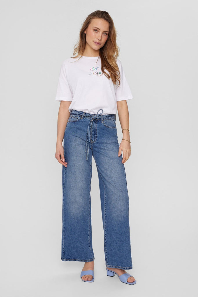 Jeans Nubrooklyn wideleg lacé - Medium blue denim