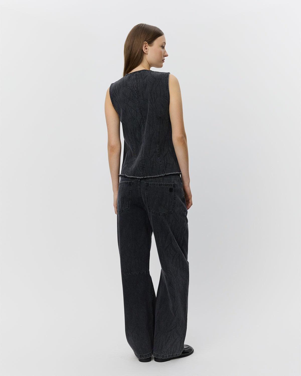 Jeans à taille mi-haute et à jambe large légèrement ballon*. Imprimé abstrait dans le tissu. Fermeture à zip.