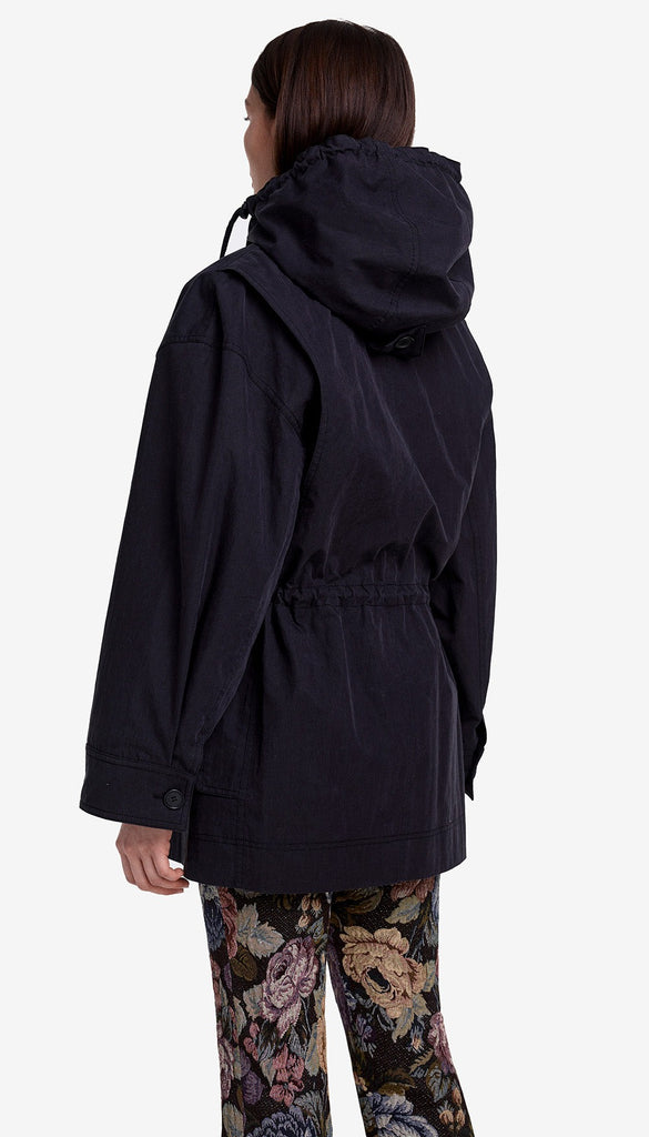 Manteau style militaire. Coupe oversized. Capuchon détachable. Grandes poches à l'avant. Possibilité de cintrer à la taille.