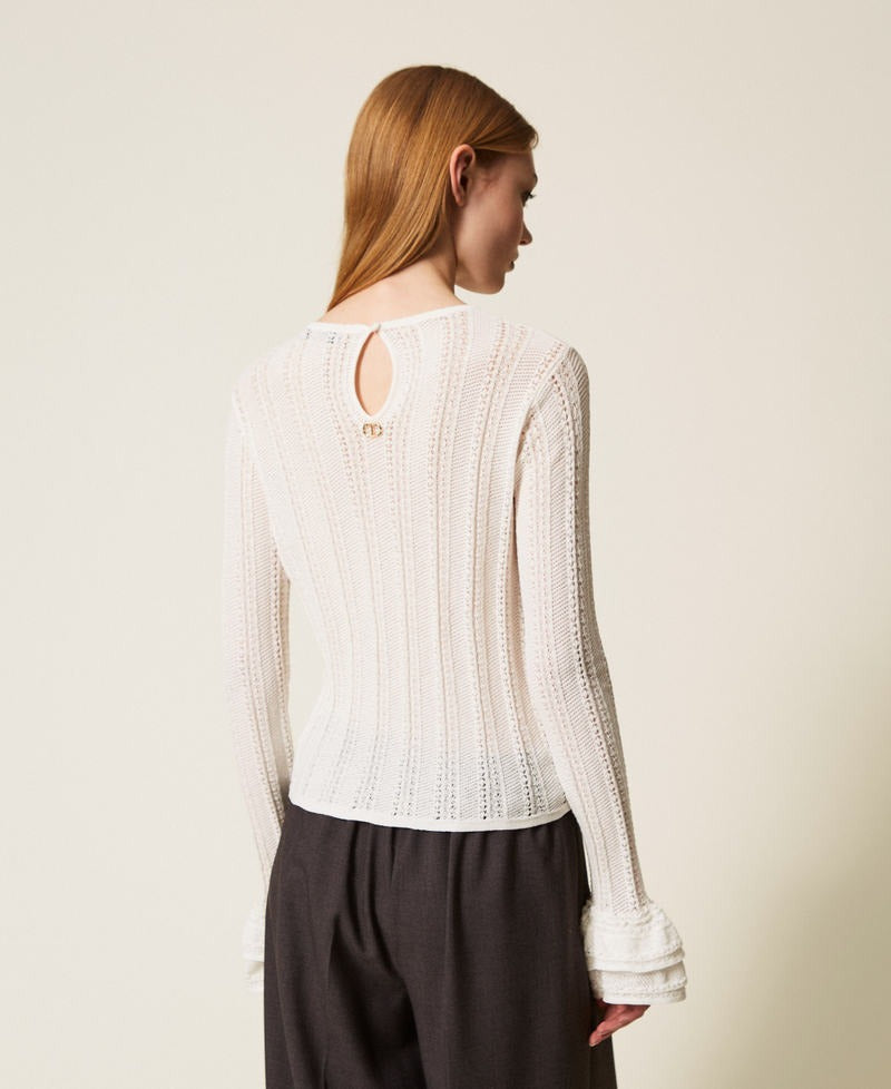Top à manches longues. Tissu extensible. Coupe près du corps. Col rond avec attache à l'arrière.