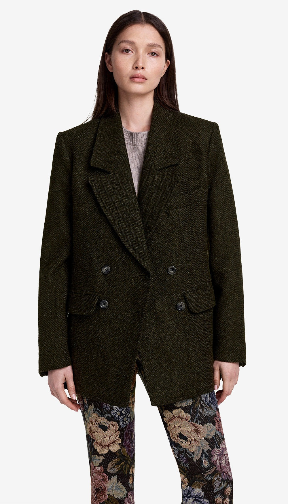 Veston oversized. Boutons à l'avant. Poches en avant.