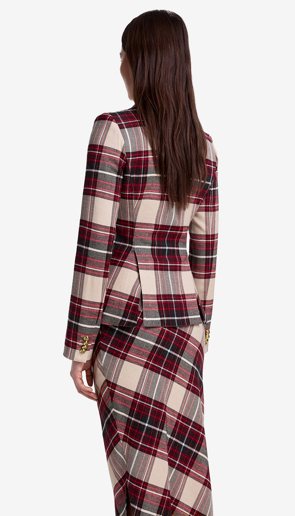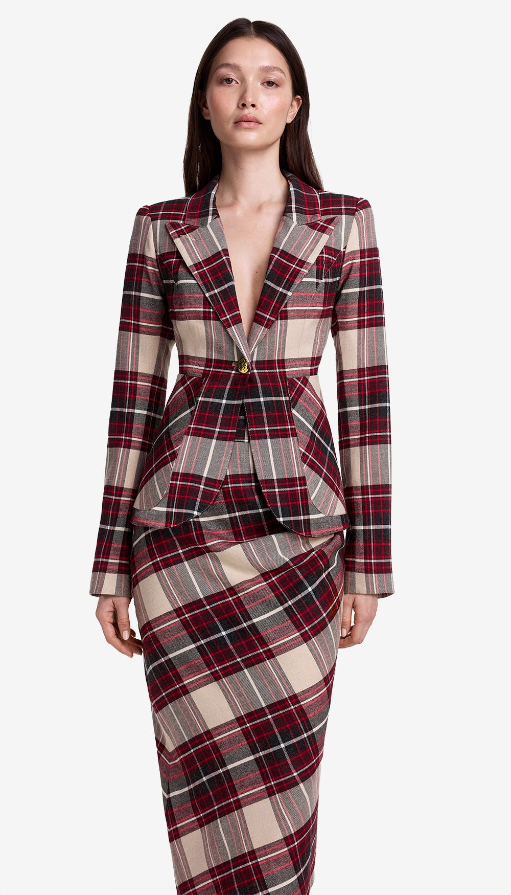 Veston à carreaux. Fermeture à un bouton à l'avant. Poches à l'avant.