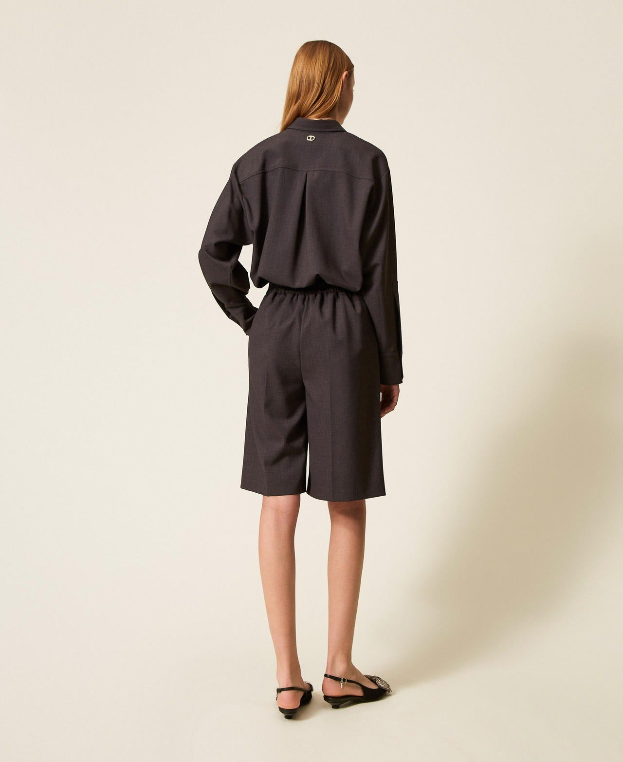 Bermuda mi-long. Fermeture à zip. Coupe ample. Boucles décoratives à la taille.