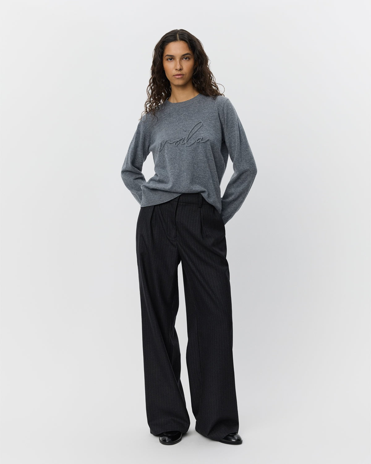 Pull à manches longues. Col rond. Écriture "Voilà" brodée à l'avant.