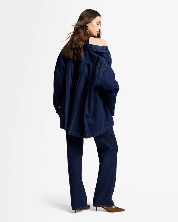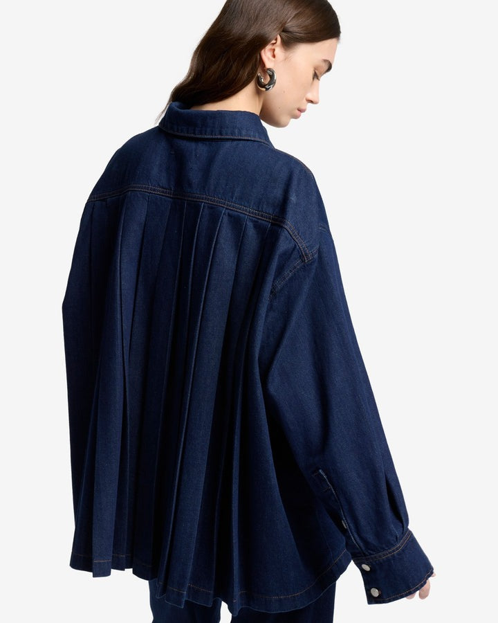 Surchemise en denim. Fermeture à boutons. Plis au dos. Coupe oversized.
